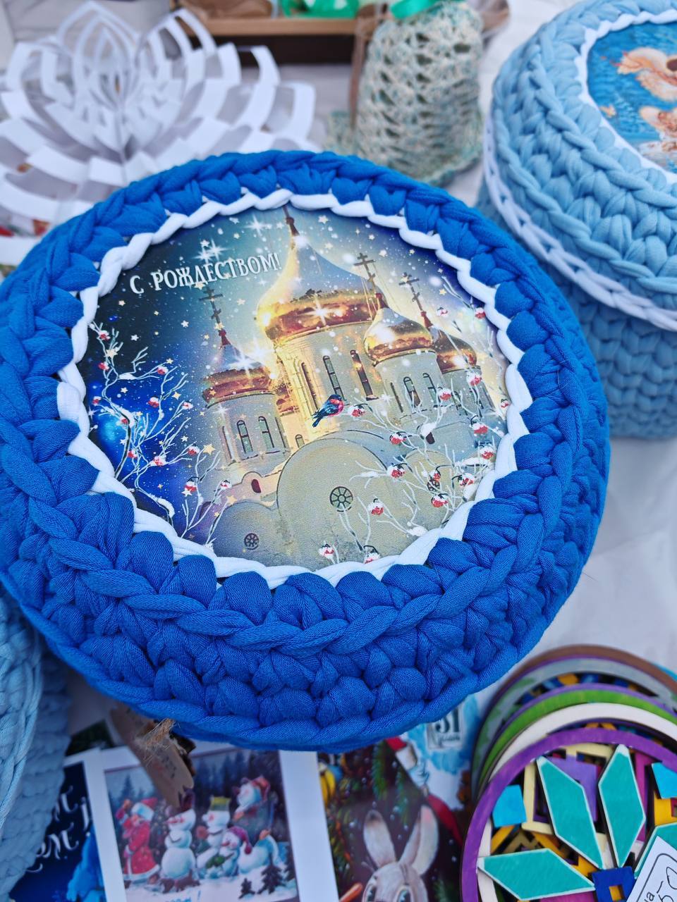 Особым спросом пользовались вязанные изделия, новогодние игрушки и Рождественские открытки.