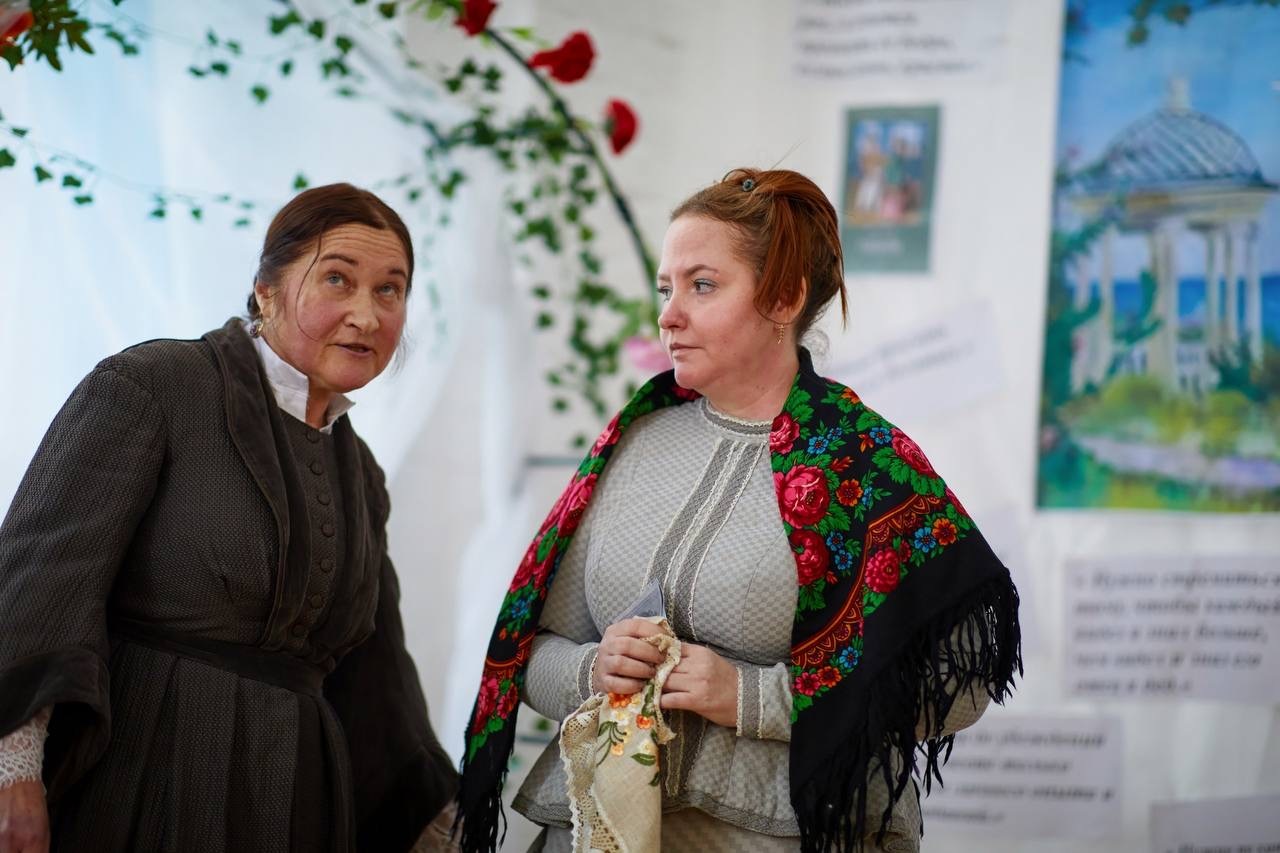 Также были представлены предметы быта, наряды эпохи модерна. Мир художественных предметов помог создатьЧеховских персонажей более колоритными.