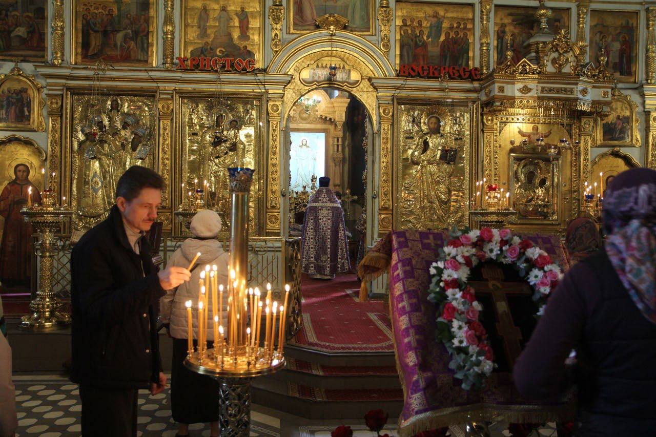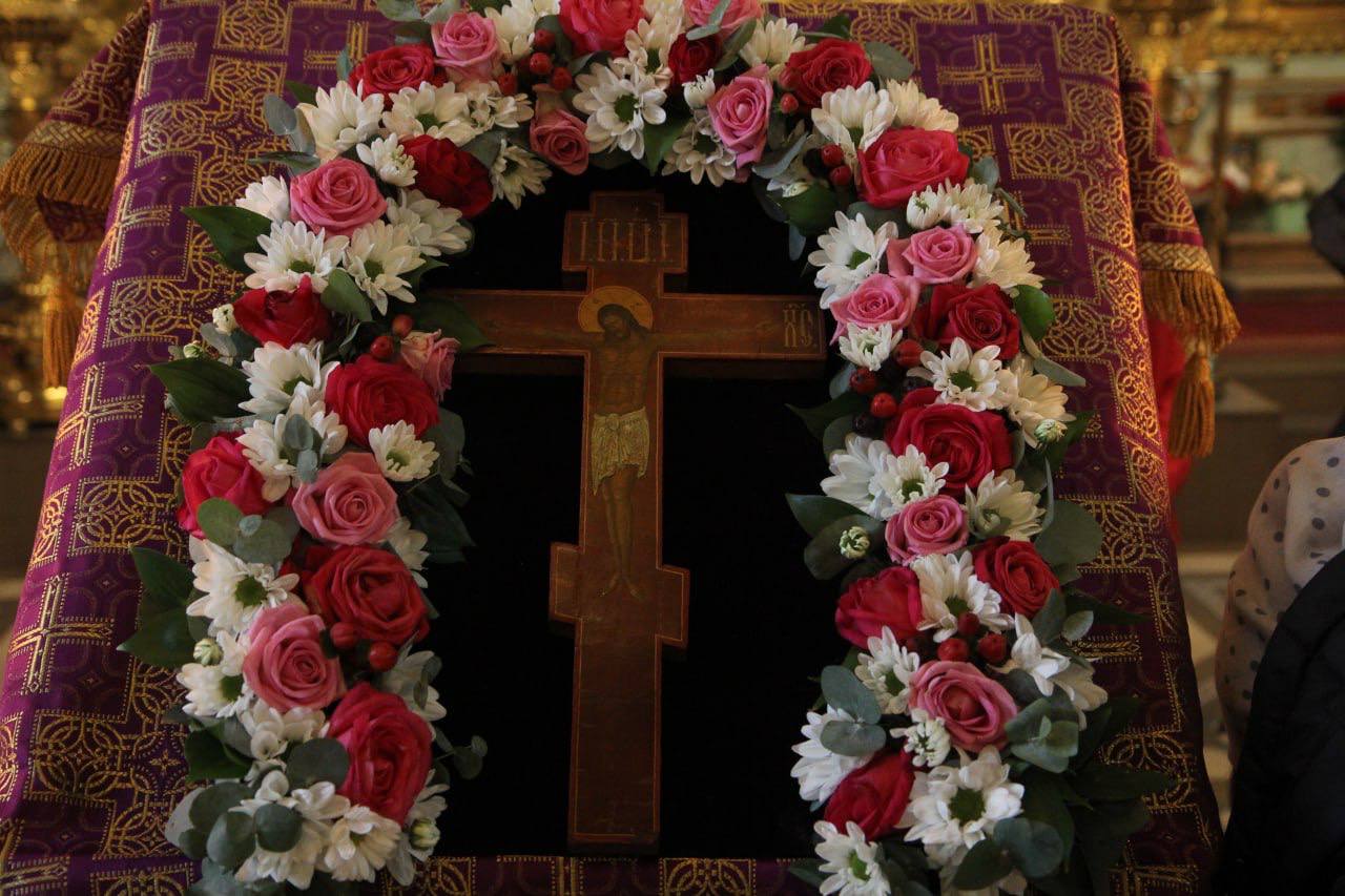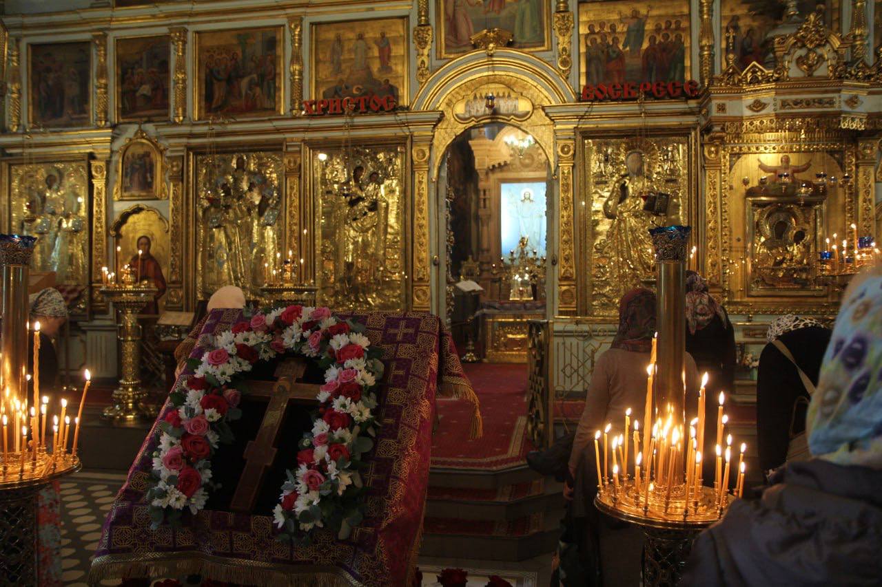 На всенощном бдении совершался торжественный вынос Креста для поклонения под пение тропаря: «Кресту Твоему покланяемся, Владыко, и святое воскресение Твое славим».
