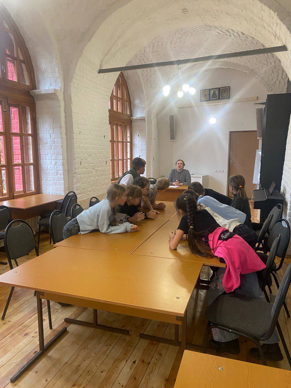 Ребята должны были пройти 5 станций, на каждой из которых их ждали вопросы и задания о празднике Покрова Божией Матери и об устройстве храма.