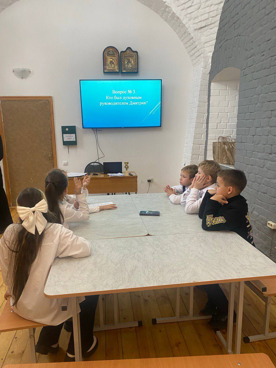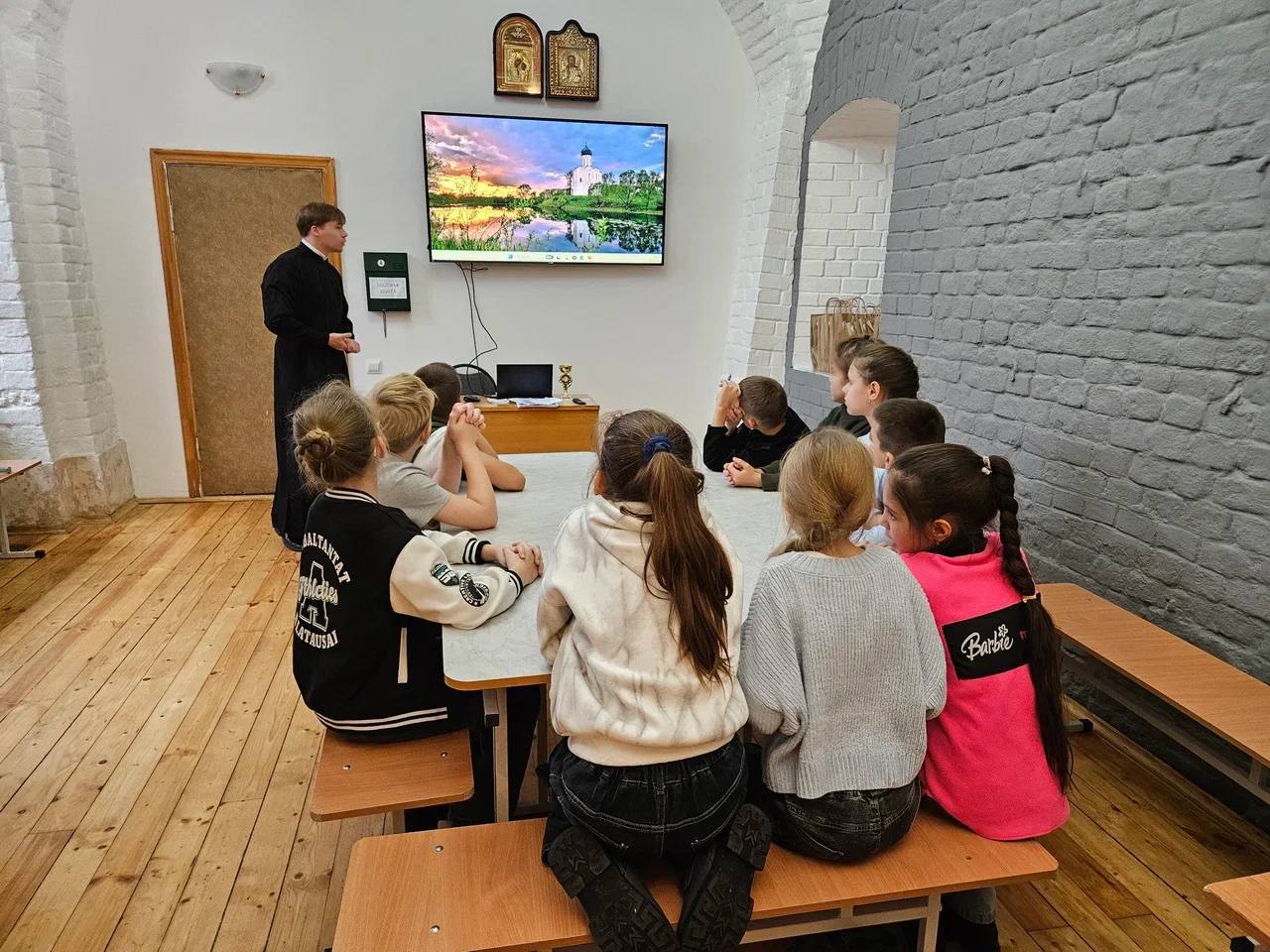 Отец Филипп, исполняющий обязанности настоятеля, приветствовал юных гостей, рассказал о нашем храме.